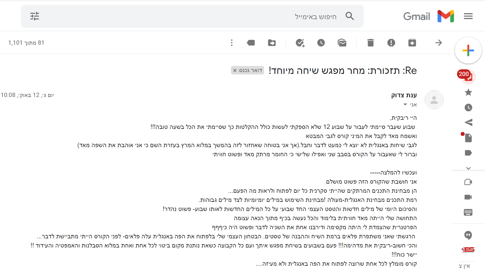 שמי רבקית ואני מנחת קבוצות לאנגלית מדוברת ומומחית בהקניית ביטחון ושטף בדיבור בחוויית למידה משמעותית ומשנה חיים!